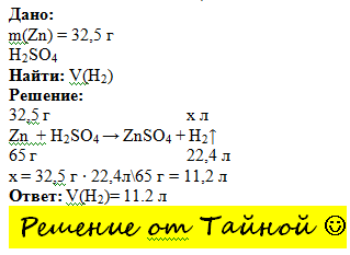 Определите объем водорода (н.у.), который выделиться при взаимодействии 32,5 г цинка с хлороводородной кислотой.