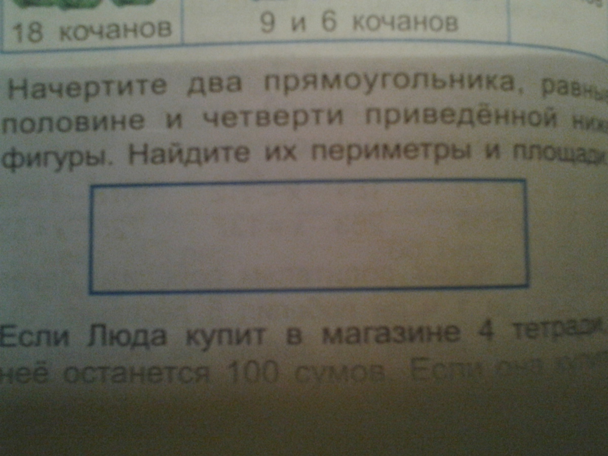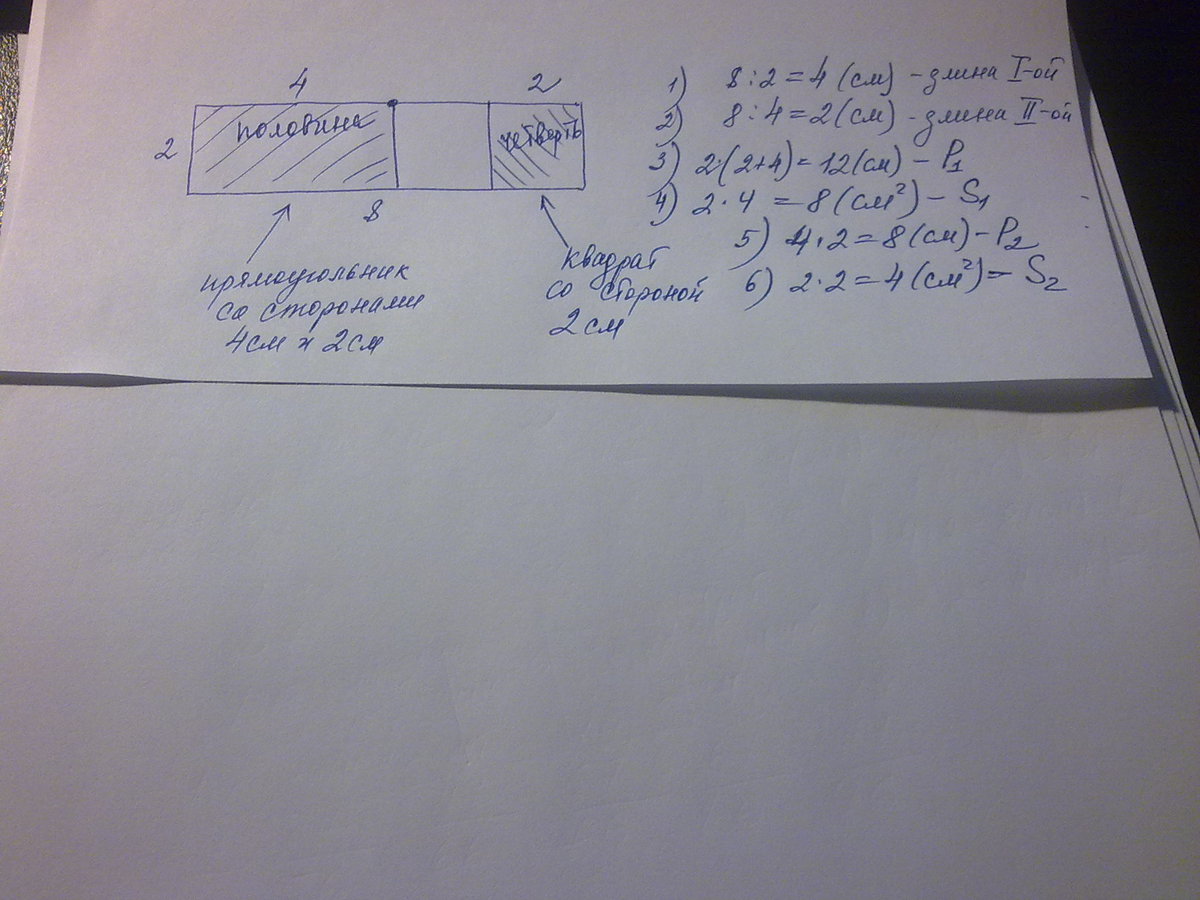 Начертите два прямоугольника, равные половине и четверти приведенной ниже фигуры. Фигура со сторонами a=8см, b=2см. Какие фигуры получатся?