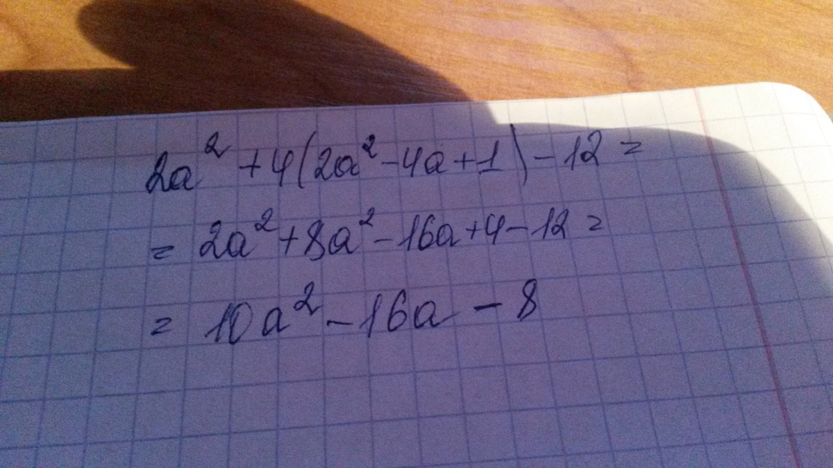 2. В выражении 2а2 + 4Ъ - 12 замените переменную Ъ многочленом 2а2 - 4а + 1 и приведите получившийся многочлен к стандартному виду.
