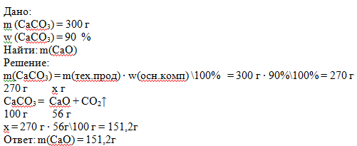 термическом разложении 300 г известняка CaCO3, содержащего 90 % карбоната