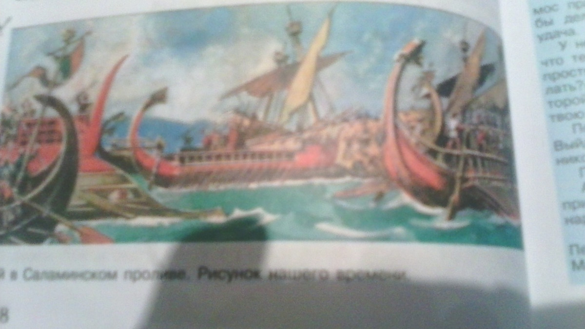 помогите пожалуйста срочно надо! опишите по рисунку ,,Бой в Саламинском проливе,,(см. с. 168) военные корабли греков и персов.Как происходило в древности морское сражение?