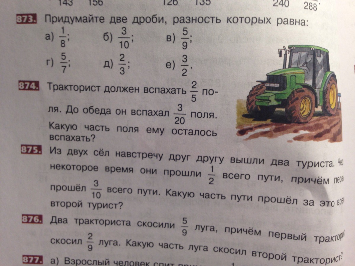 Должен вспахать-2/5=8/20 Вспахал-3/20 Осталось-8/20-3/20=5/20=0,25