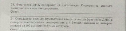 23. ФРАГМЕНТ ДНК СОДЕРЖИТ 24 НУКЛЕОТИДА, 3 НУКЛЕОТИДА СОСТАВЛЯЮТ 1 АМИНОКИСЛОТУ, ЗНАЧИТ