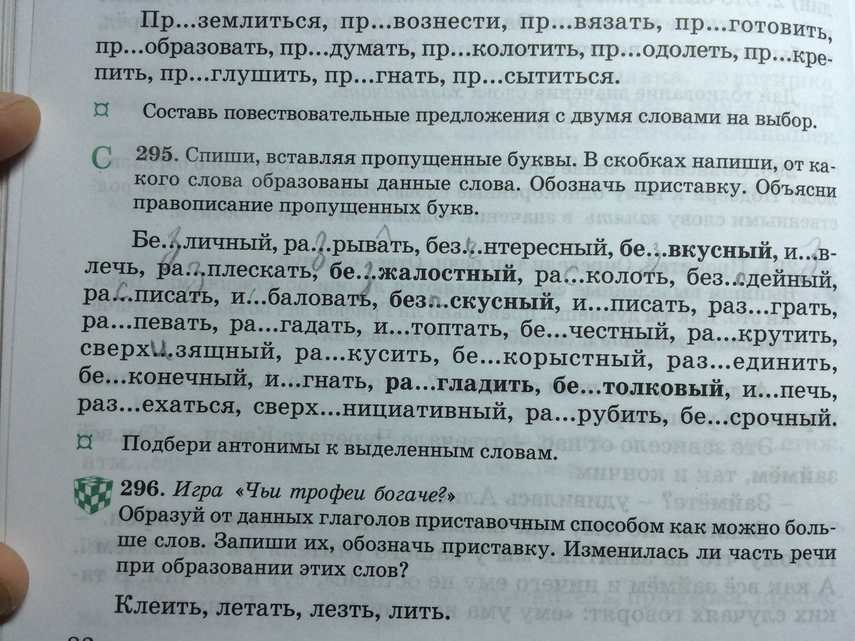 избаловать, безыскусный, исписать, разыграть, распевать, разгадать, истоптать, бесчестный, раскрутить, сверхизящный, раскусить, бескорыстный, разъединить, бесконечный, изгнать, разгладить, бестолковый, испечь, разъехаться, сверхинициативный, разрубить, бессрочный