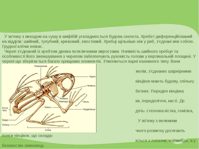 У бесхвостых амфибий есть ребра, хвостовая кость, хрящи, но нет шейного отдела.
