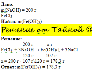 РЕшите Срочно!!Сколько можно получить гидроксида железа 3 при взаимодействии 200г едкого натра при достаточном количестве хлорида железа 3?