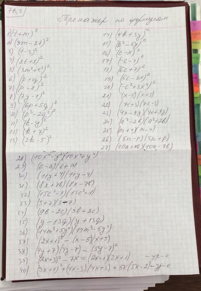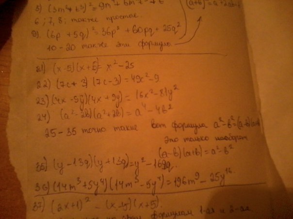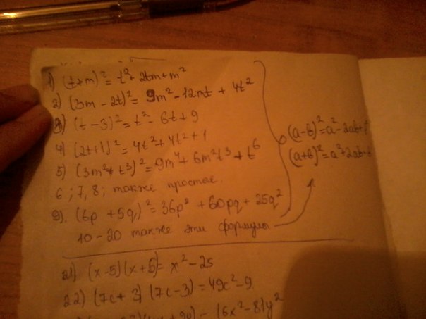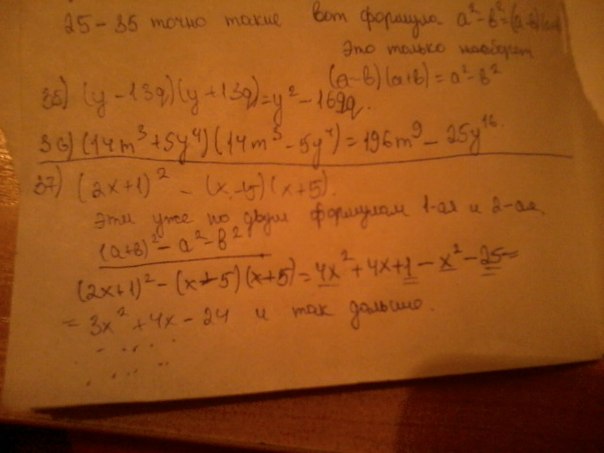 Все эти выражения нужно раскрывать по формуле квадрата разности/суммы и разности квадратов: