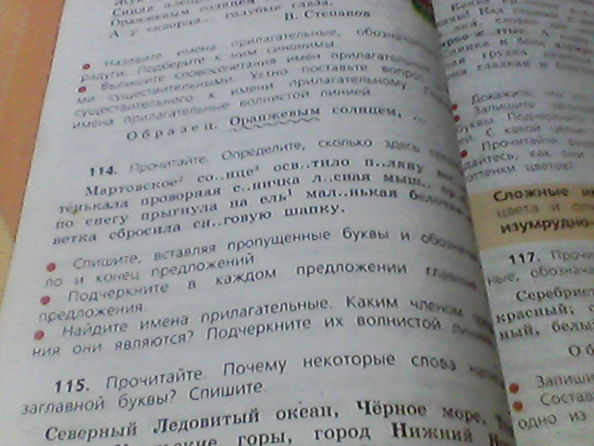 Имена прилагательные: мартовское, проворная, лесная, маленькая, еловая, снеговую (подчеркни волнистой линией).