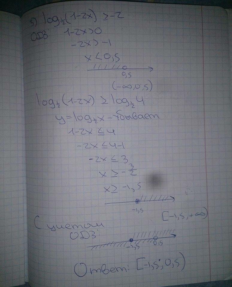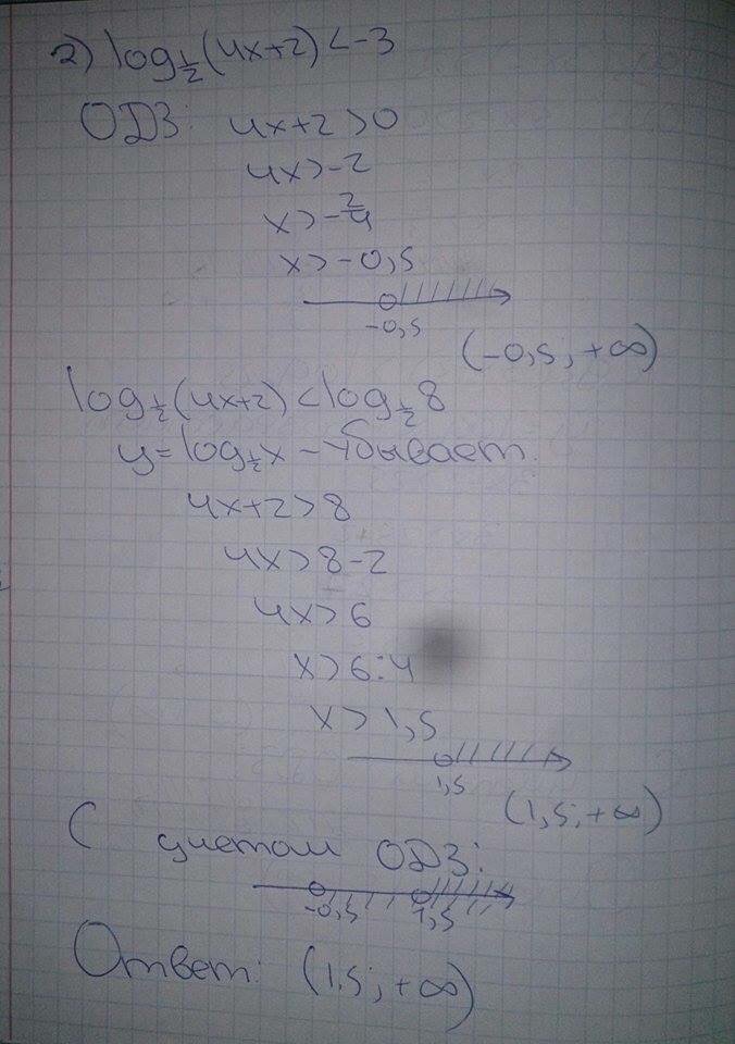 Логарифмическая функция с основанием 0<1/2<1 убывающая. Большему значению функции соответствует меньшее значение аргумента. С учетом ОДЗ неравенства получаем систему: