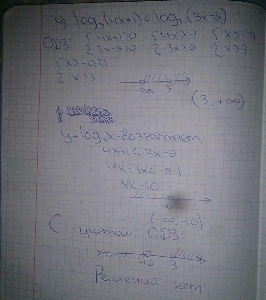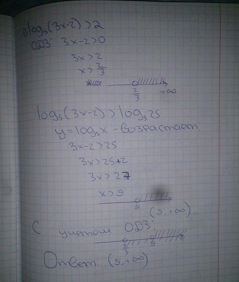 Логарифмическая функция с основанием 3>1- возрастающая. Поэтому большему значению функции соответствует большее значение аргумента. С учетом ОДЗ неравенства получаем систему:
