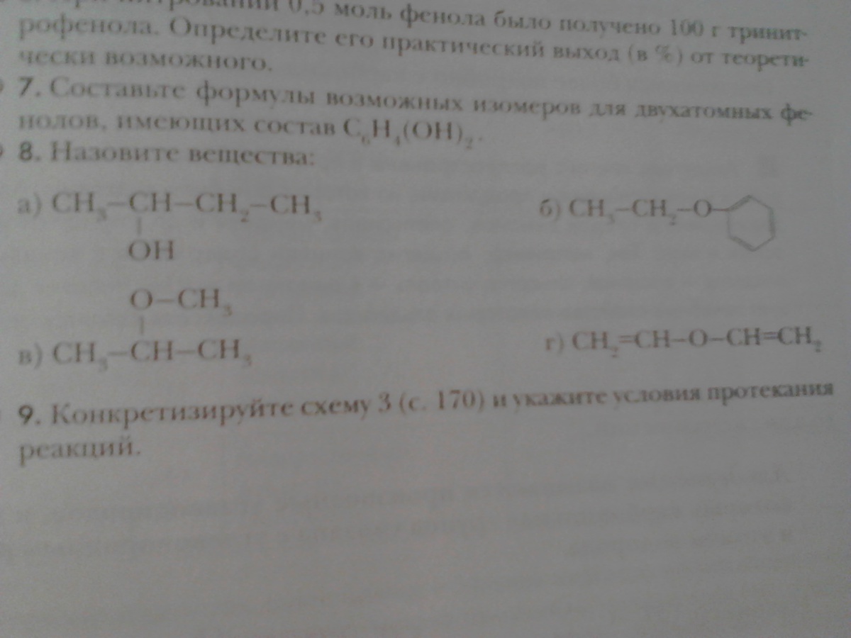 а)-бутанол-2,б)-этилфениловый эфир,в)метилизопропиловый эфир,г)-дивиниловый эфир.