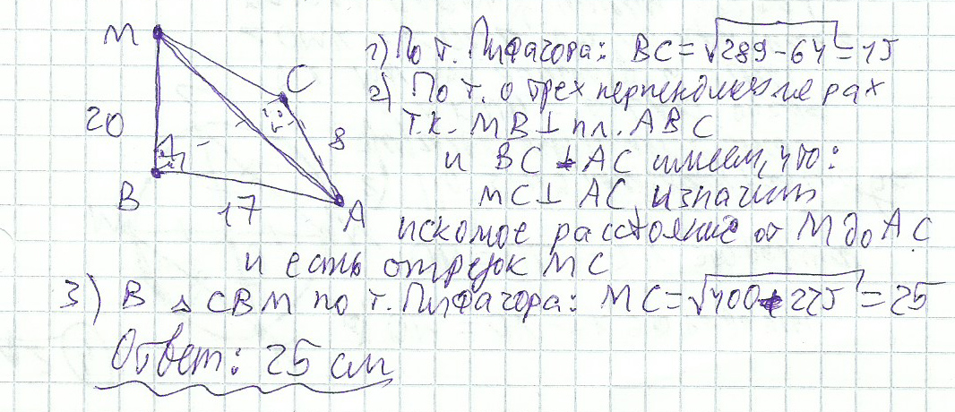 В прямоугольном треугольнике угол С прямой. МВ- перпендикуляр
