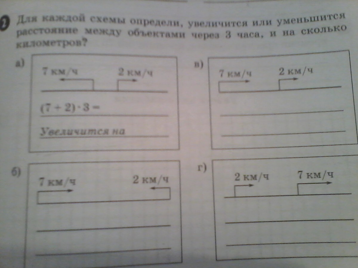 а) (7+2)*3=27 - увеличится - разъедутся в разные стороны на 27 км