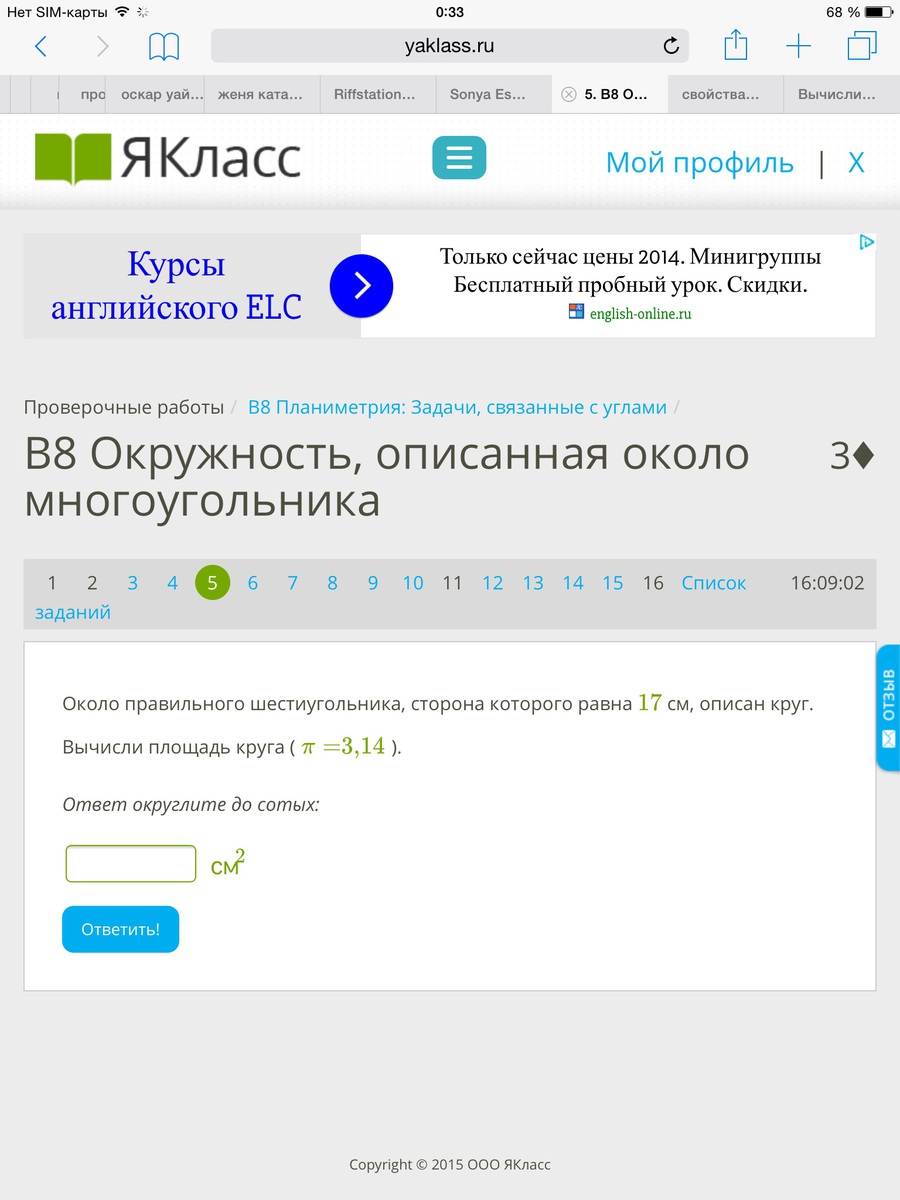 Площадь круга S = πR² = 3.14 · 17² = 907.46 (см²)
