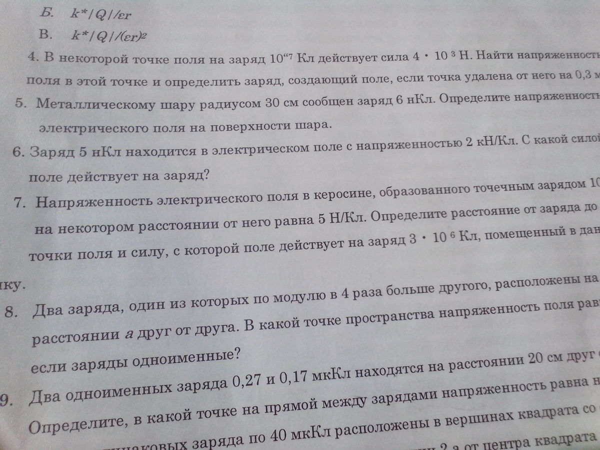 заряд 5нКл находится в электрическом поле с напряженностью 2кН/Кл. С какой силой поле действует на заряд?