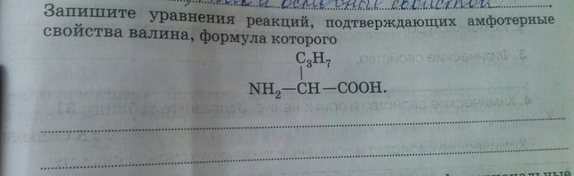 NH2CH(C3H7)COOH + NaOH = NH2CH(C3H7)COONa +H2О проявляет свойства кислоты