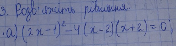 (2x - 1)^2 - 4( x - 2)(x + 2) = 0;