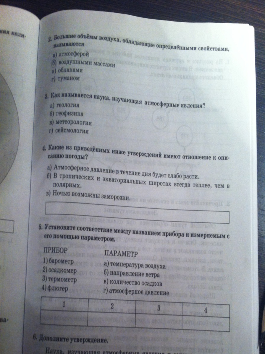 5: барометр - г, осадкомер - в, термометр - а, флюгер - б