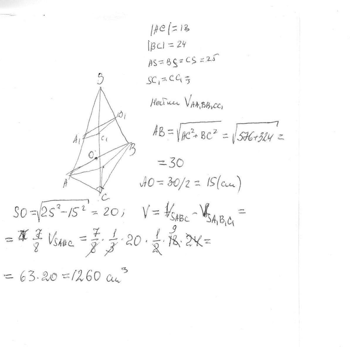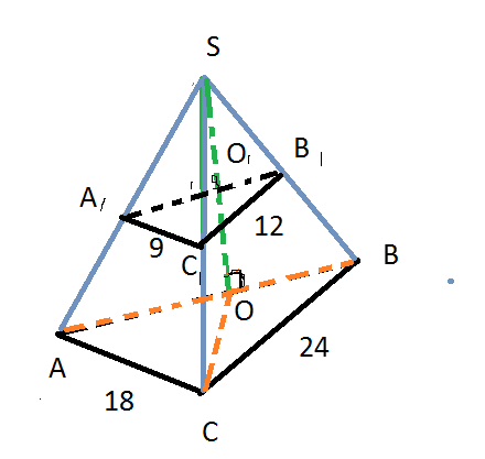 =1/3·1/2 AC·BC·SO - 1/3·1/2·A₁C₁·B₁C₁·SO₁=1/6(18·24·20-9·12·10)=