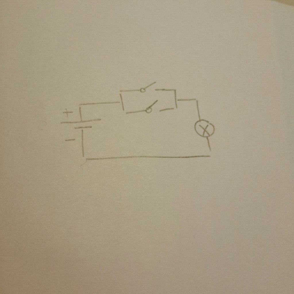 Нарисуйте схему соединения батарейки лампочки и двух ключей при которой для включения лампочки необходимо замкнуть хотя бы один ключ