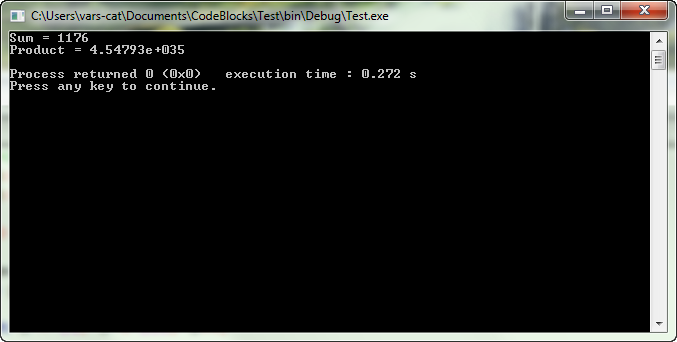 cout << "Sum = " << sum << "nProduct = " << product << endl;