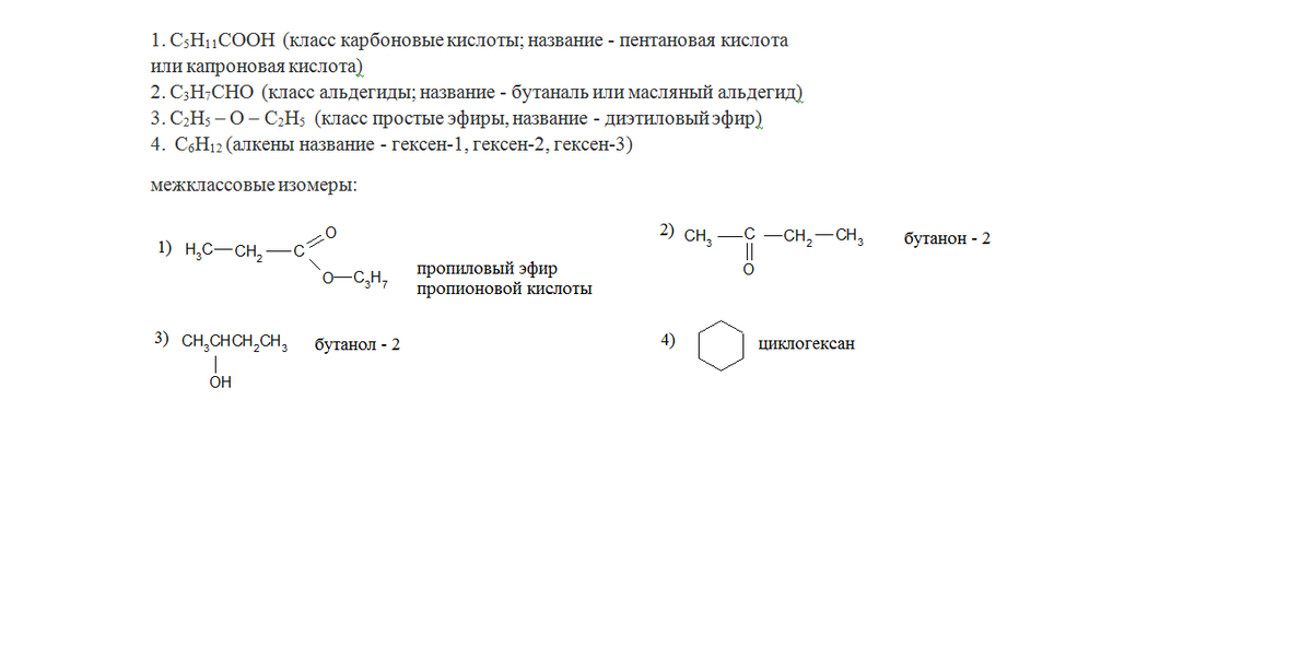Составьте по одной формуле межклассового изомера для каждого из них.