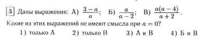 При а=0 не имеет смысл только первое выражение, т.к знаменатель не должен быть равен нулю, ибо на ноль делить нельзя.