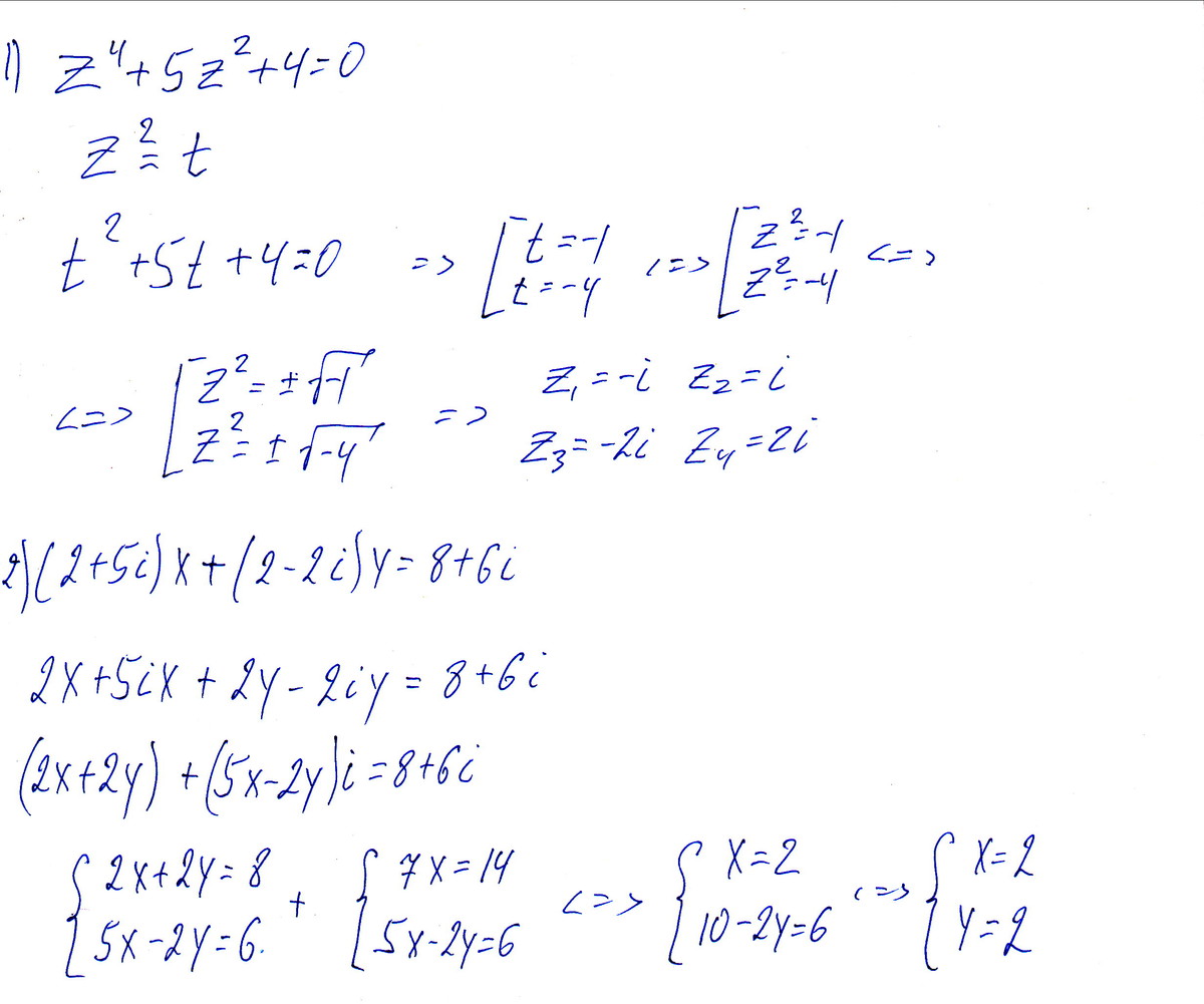 Решить алгебраические уравнения на множестве комплексных чисел: