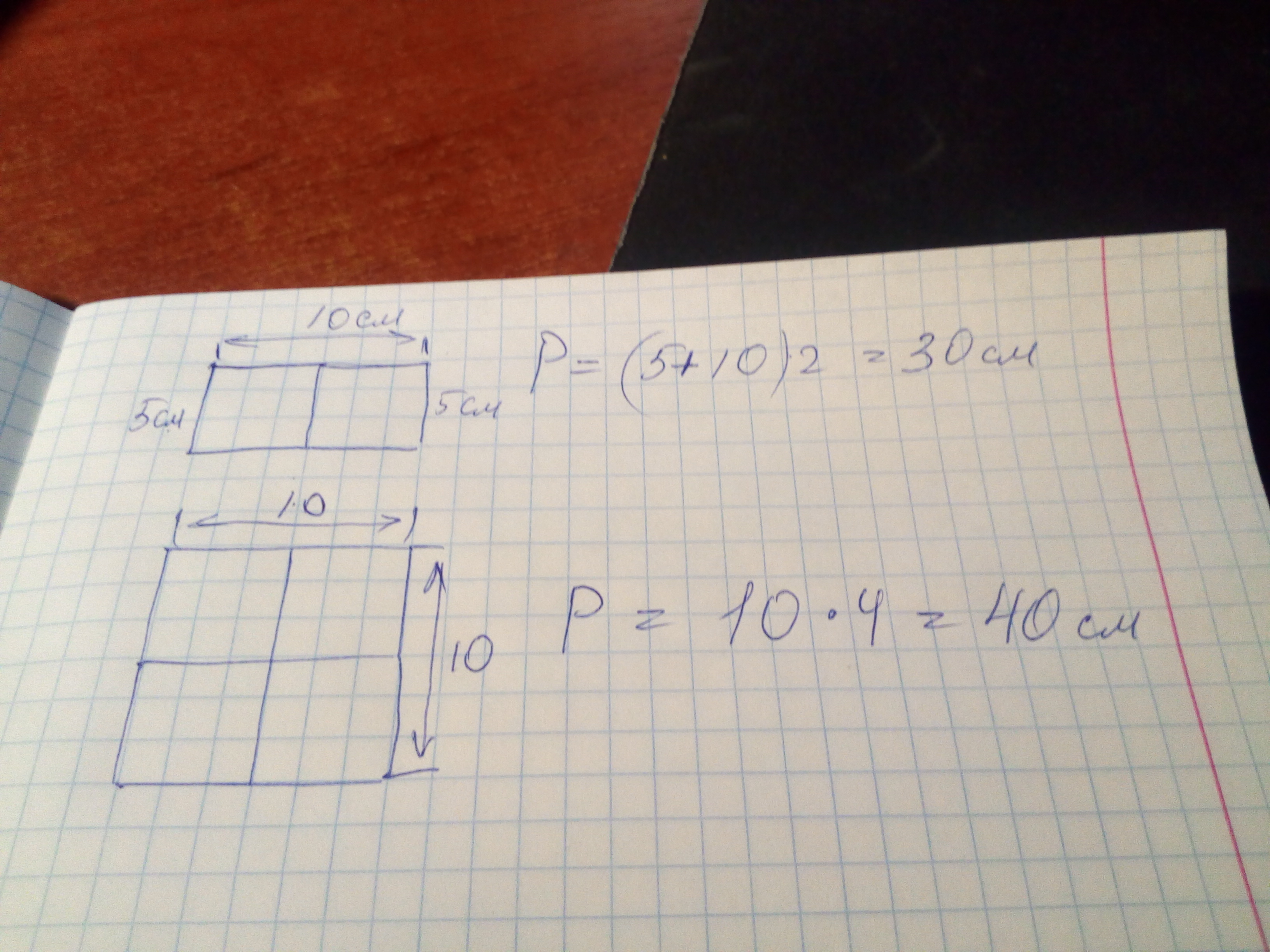 Из двух квадратов со стороной 5см.составили прямоугольник.Найди периметр квадрата составленного из двух таких прямоугольников?