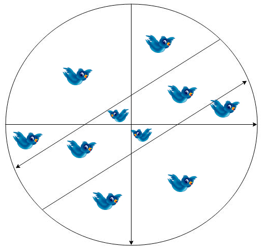 в круге 10 птичек как разделить 4-мя прямыми линиями,чтобы каждая птичка была в своём домике заранее спасибо