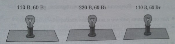 ПРИМЕЧАНИЕ.электрическая лампочка горит полным накалом , когда подводимое к ней напряжение соответствует номинальному значению значению указанному на баллоне лампочки(на рисунке значение лампочки представлены сверху)