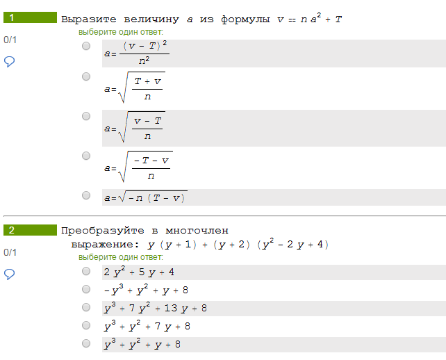 1) а= корень из v-t/n. 2) y3 + y2 + y + 8