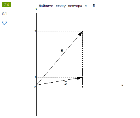 Разность векторов a-b это вектор соединяющий концы векторов b и a, т.е. идущий от конца вектора b к концу вектора а.. Его длина это 7-1=6.