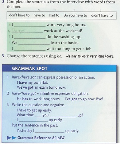 1. I have to work very long hours. (He has to work very long hours.)это пример