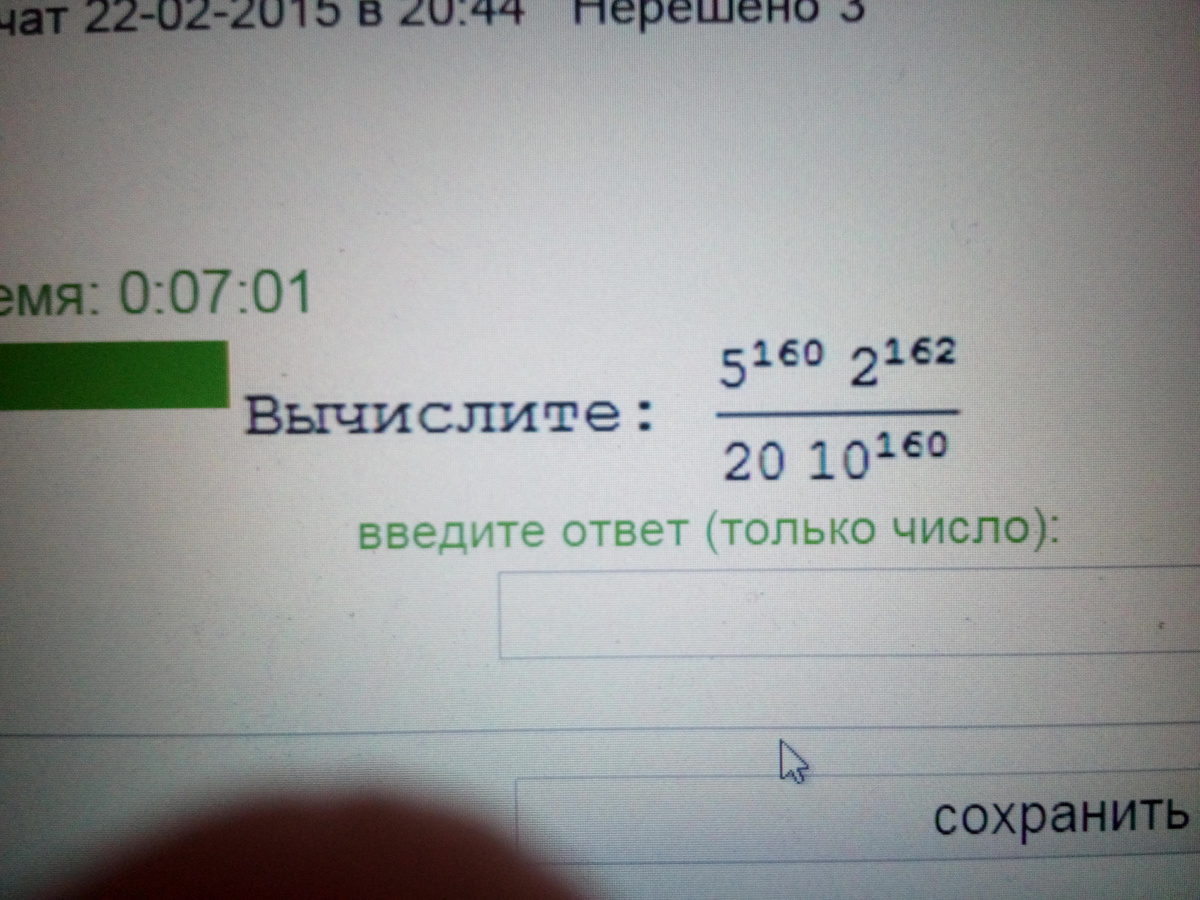 5^160*2^162/(20*2^160*5^160)=2^2/20=4/20= 0,2
