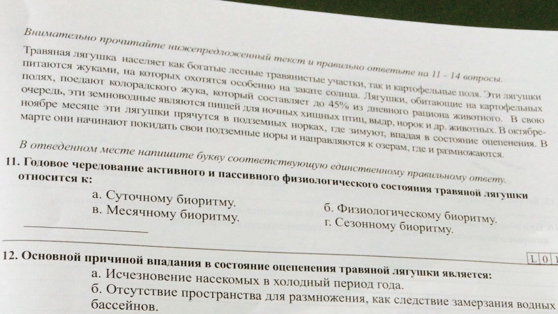 Все серьезные изменения в поведении и физиологии живого организма, связанные с сезонами, должны зависеть от фактора, значение которого из года в год постоянно и неизменяемо. Таким фактором является продолжительность светового дня. Следовательно, оцепенение лягушки будет зависеть от продолжительности дня...