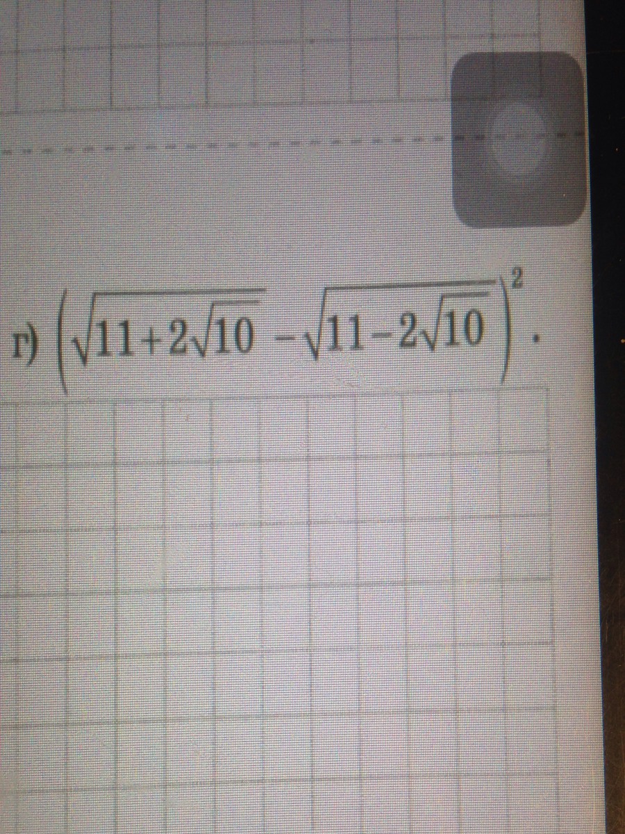 (√(11+2√10)-√(11-2√10))^2=11+2√10-√((11+2√10)(11-2√10))+11-2√10=22-√(121-40)=22-√81=22-9=13