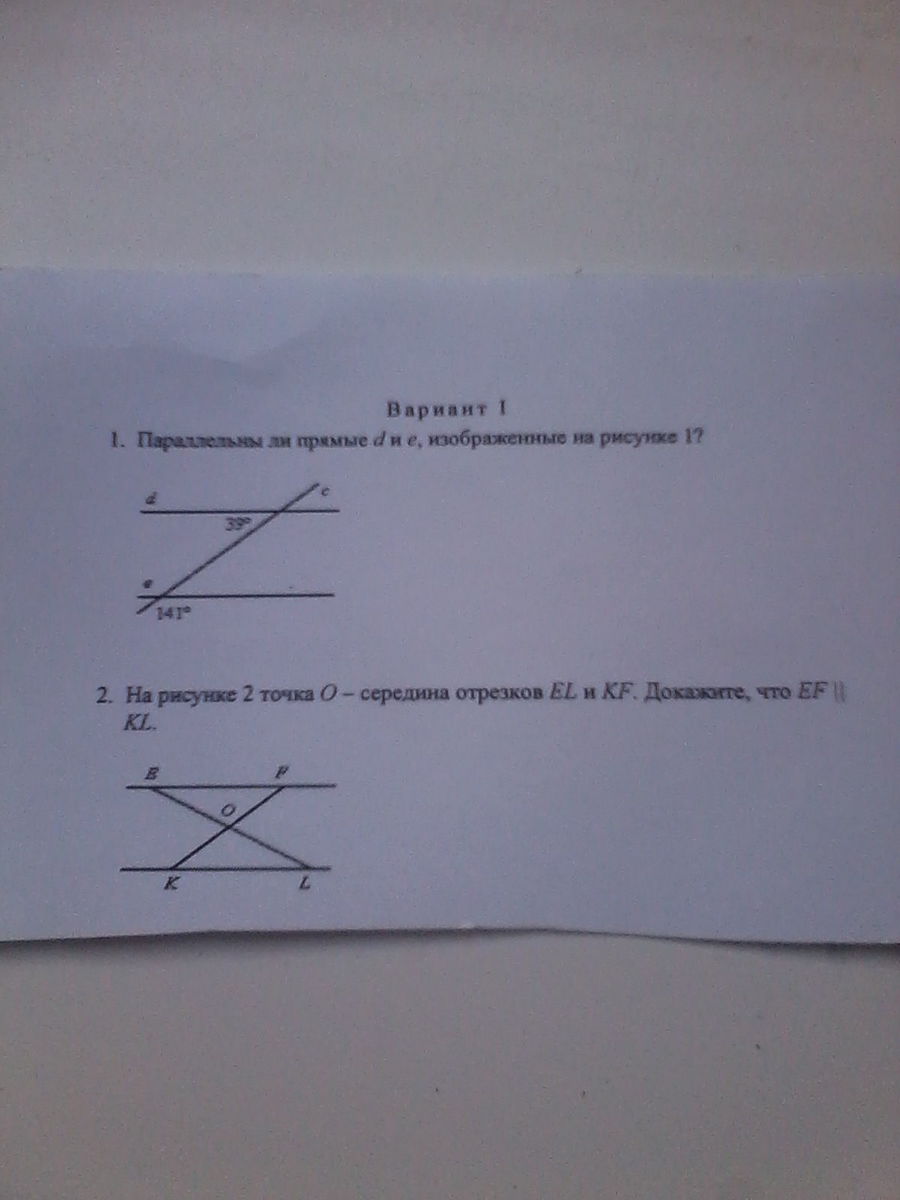 Прямые параллельны, т.к. если к углу 39градусов прибавить вертикальный углу 149градусов, то получится 180 градусов. (если сумма односторонних углов при двух прямых секущей равна 180градусов, то прямые параллельны).