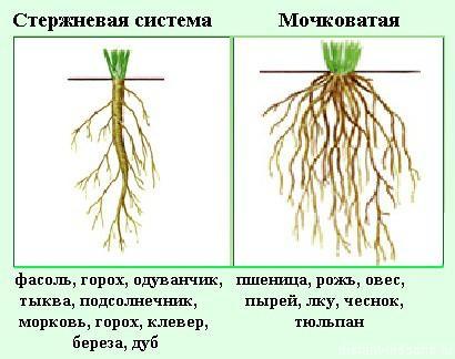 Стержневая корневая система имеет четко выраженный главный корень, развивающийся из зародышевого корешка. Этот тип корневой системы характерен двудольных растений.