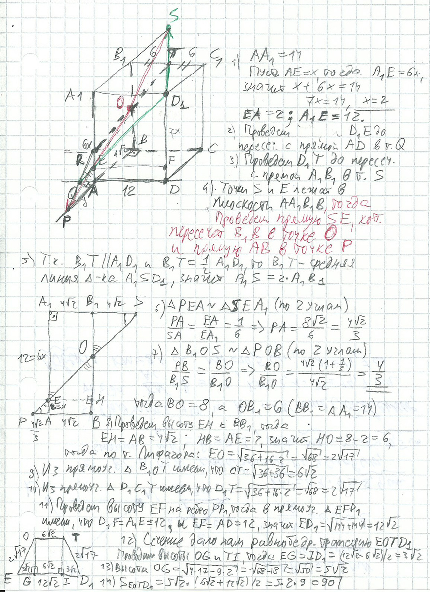 Площадь сечения равна 90. Пункты а) и б) разобраны в файле ))