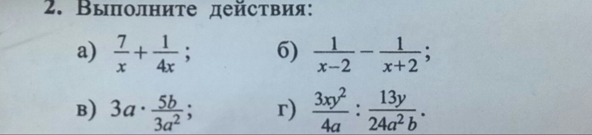а) 7/х +1/4х= (28+1)/4х=29/4х