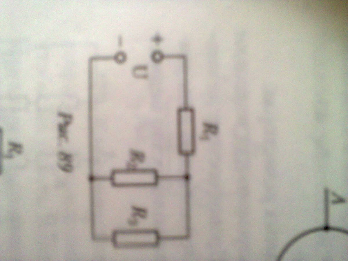 Определите силу тока, проходящего через резистор R3, если сопротивления резисторов R1=R2=R3=6 Ом, а напряжение на клеммах источника тока U= 9 В.