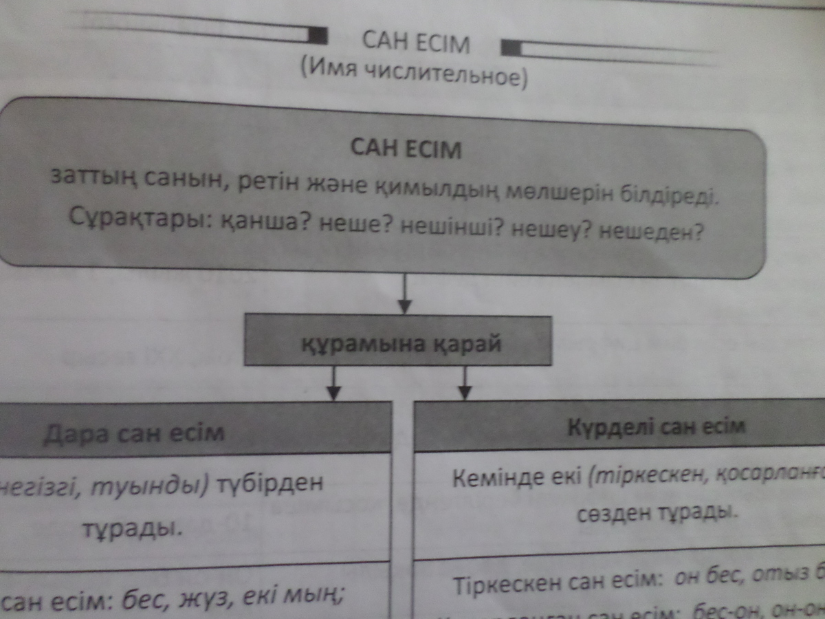 Заттын санын ,молшерын,ретын былдырып,канша?неше?нешеу?нешыншы?тарызды сурактарга жауап беретын соз табын сан есым дейды.