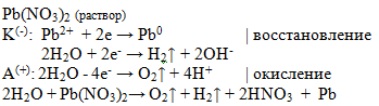 свинец в ряду активности почти в конце перед водородом, а все металлы от Mn-H могут восстанавливаться из водных р-ров в виде металла, и одновременно раряжаться молекулы воды