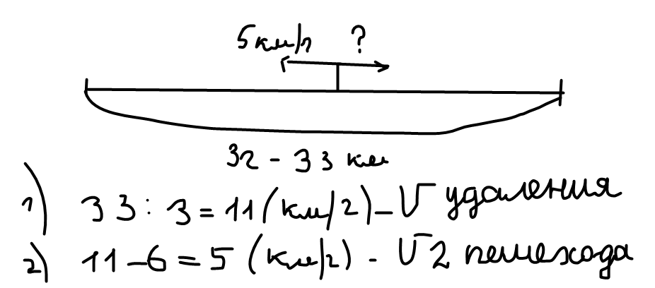 3 часа расстояние между ними было 33 км.Первый пешеход шёл со скоростью 5 км в час. С какой скоростью шёл второй пешеход?