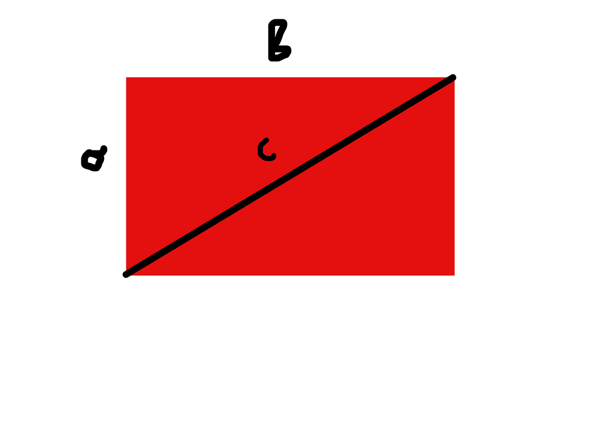 У прямокутнику діагональ утворює прямокутний трикутник, де сторона а і b катети, діагональ с - гіпотенуза. За теоремою Піфагора с²=a²+b²
