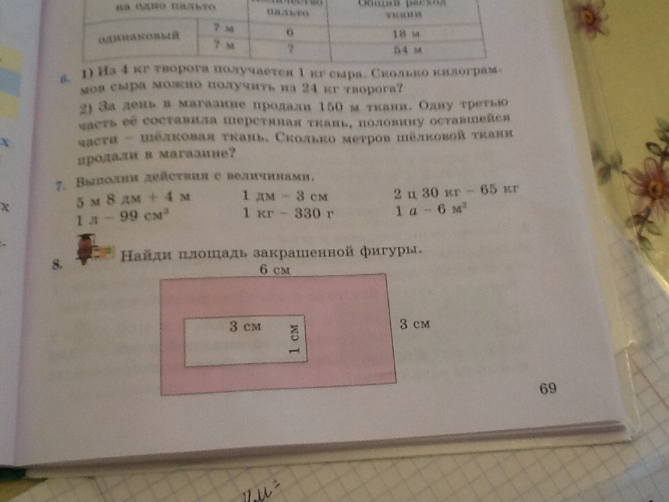 1)5м8дм+4м=9м 8 дм 2)1л-99см^3 = 100см^3-99см^3= 1cм^3 3)1дм-3см=10см-3см=7см 4) 1кг-330 г=1000г-330г=670г 5)2ц30кг-65кг=230кг-65кг=165кг 6)1а-6м^2=94 м^2