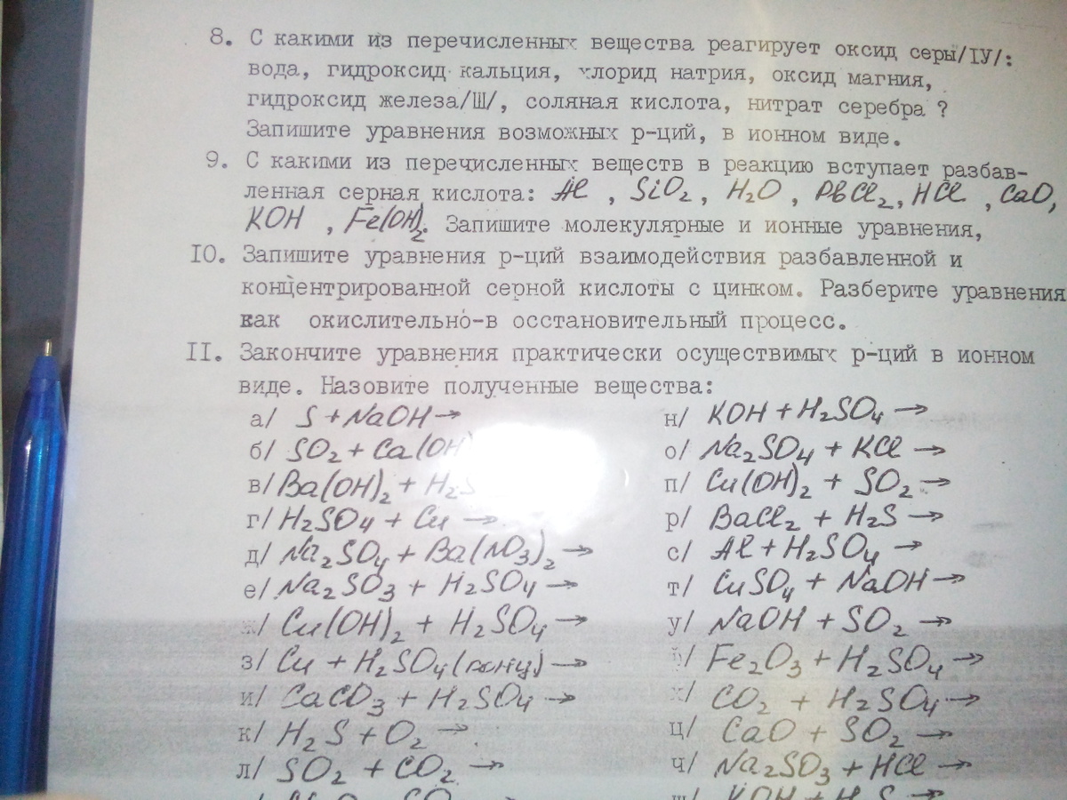 степень окисления серы в №8 =+4, с остальными реакции нет