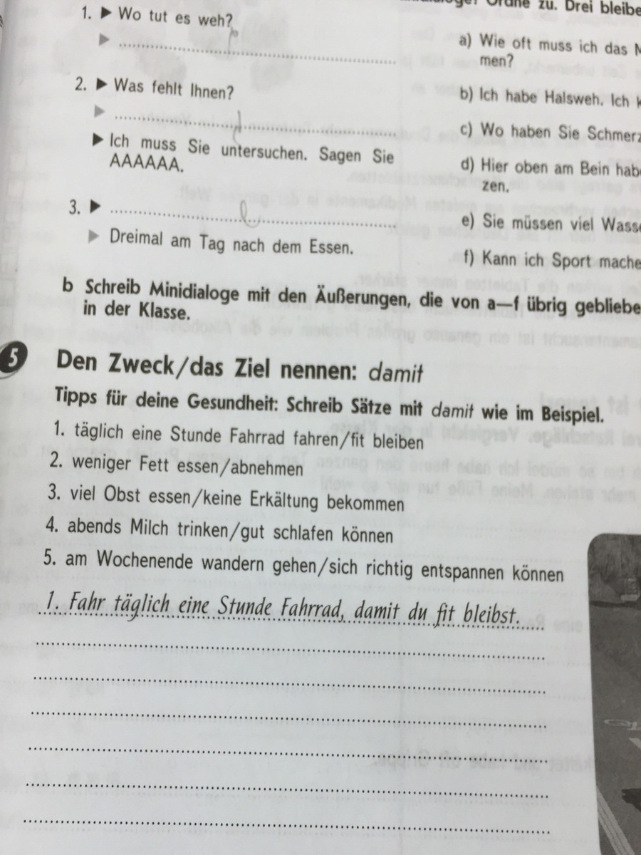 Tipps für deine Gesundheit: Schreib Sätse mit damit wie im Beispiel
