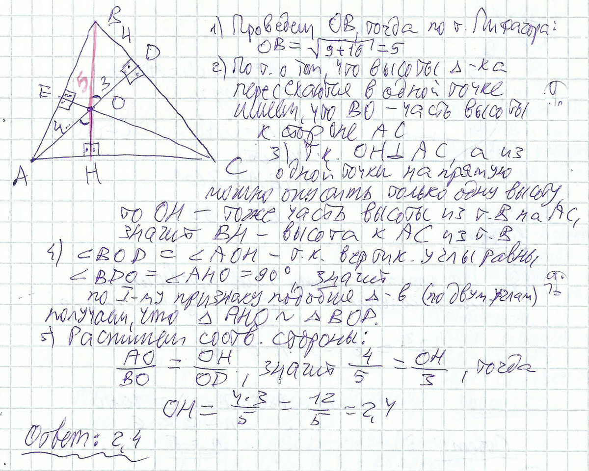 1) По теореме - все высоты в остроугольном треугольнике пересекаются в одной точке;